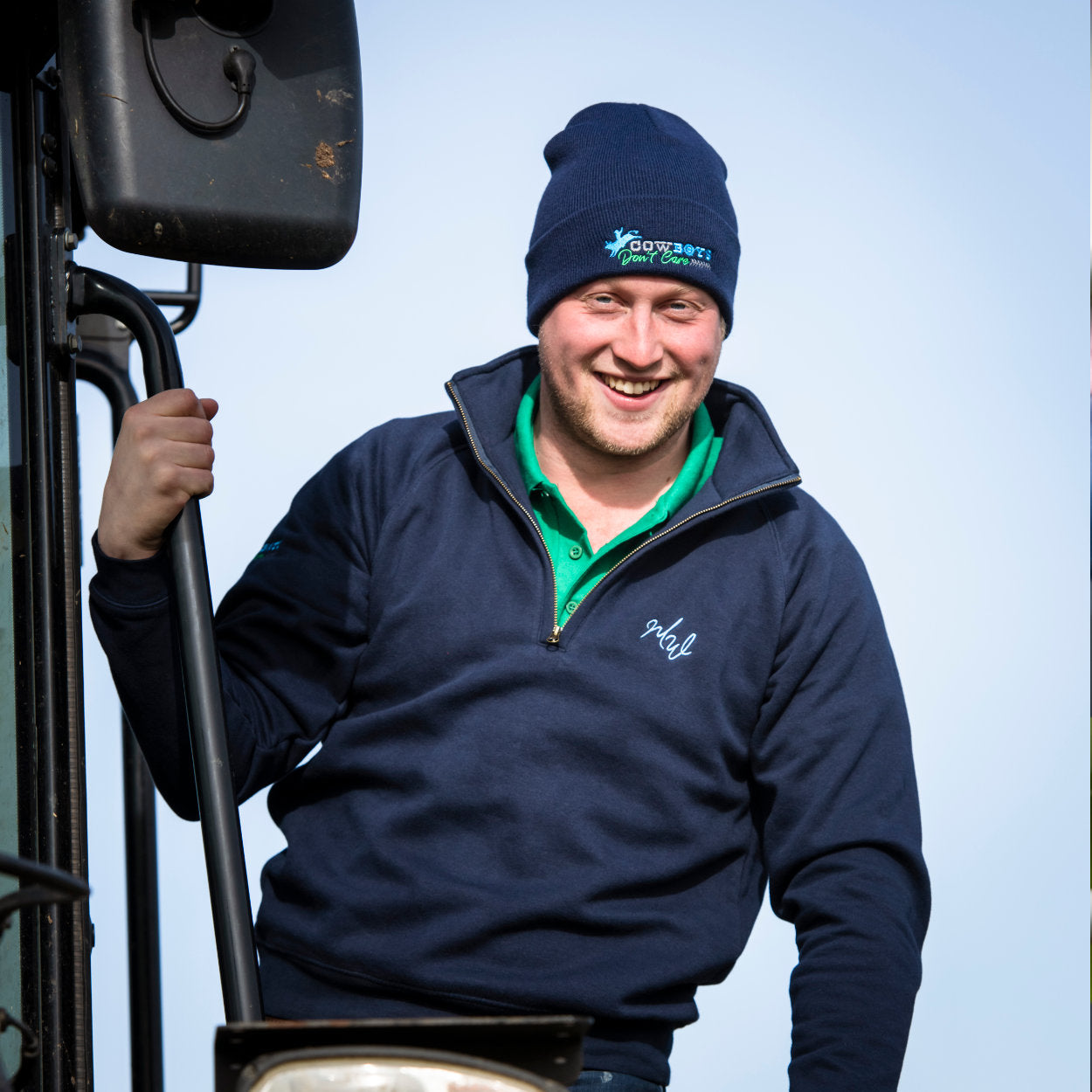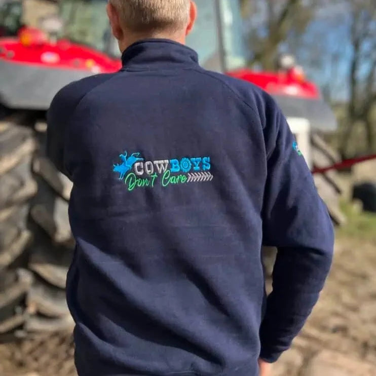 - Small sleeve and chest embroidery **DEEP NAVY ONLY** Cowboys Don't Care logo embroidered on the back